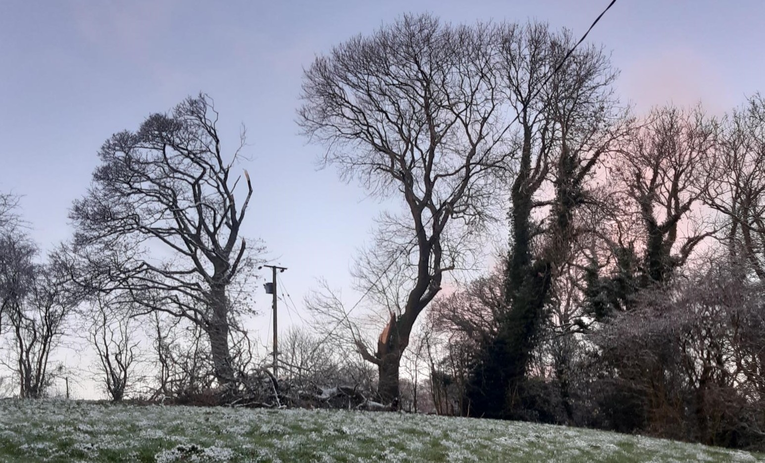 Repairs to the network include removing trees from lines, and repairing broken lines and poles that have been damaged by flying debris and falling trees.